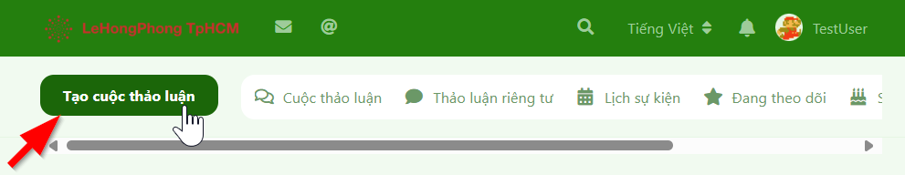 - Trên máy tính: bạn click vào nút "Tạo cuộc thảo luận"