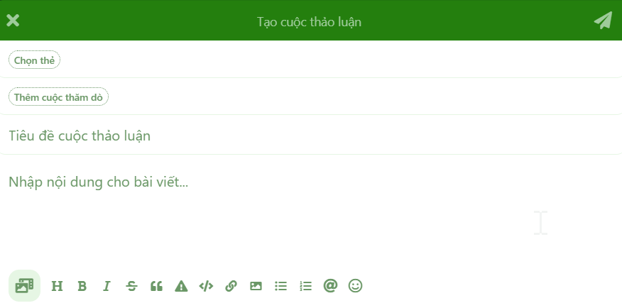 Sau khi khởi tạo cuộc thảo luận ở bước 1, tùy màn hình bạn đang dùng (điện thoại hay máy tính), bạn sẽ thấy cửa sổ tạo cuộc thảo luận hiện ra