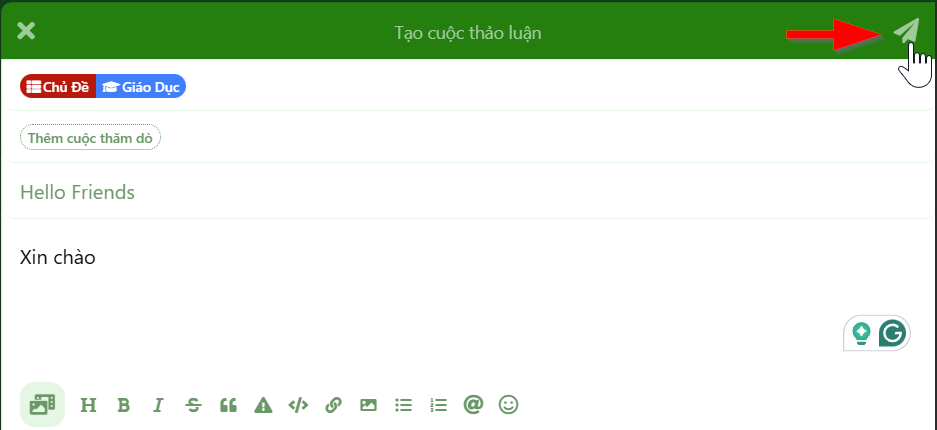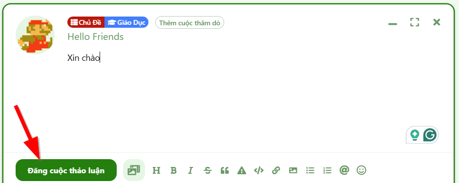 - Trên máy tính: sau khi hoàn chỉnh thì click vào nút "Đăng cuộc thảo luận".